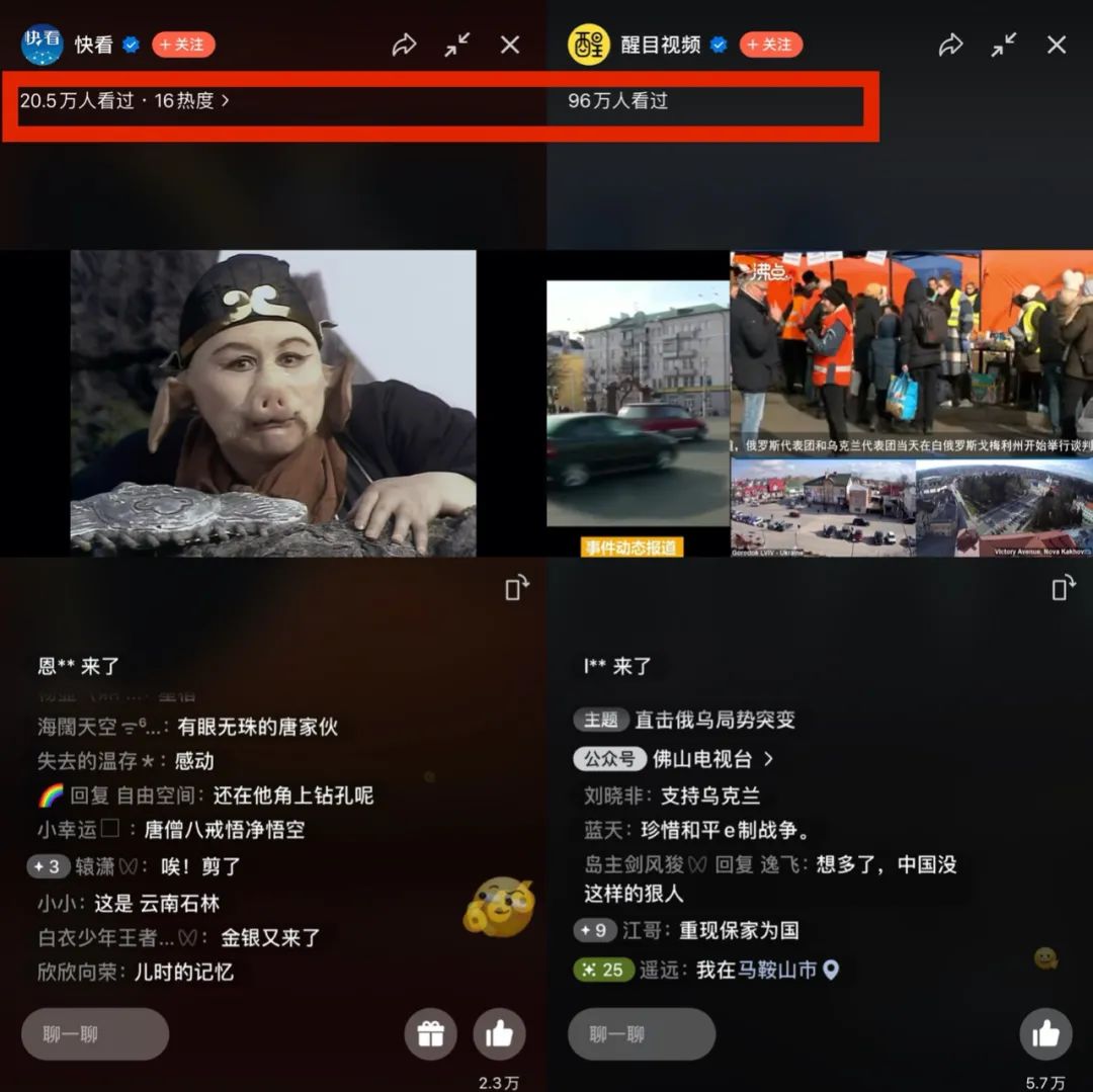 而資訊直播和影視節(jié)目直播則始終是微信直播最可靠的直播類目。尤其是重大事件中,這兩類直播對視頻號直播的加成作用十分明顯。例如2022年春晚,微信視頻號拿到春晚豎屏直播權(quán),獲得1.2億在線觀看;近期的俄烏事件,也讓視頻號直播的存在感倍增,相關(guān)媒體的視頻號直播間普遍有幾十萬在線人數(shù)。