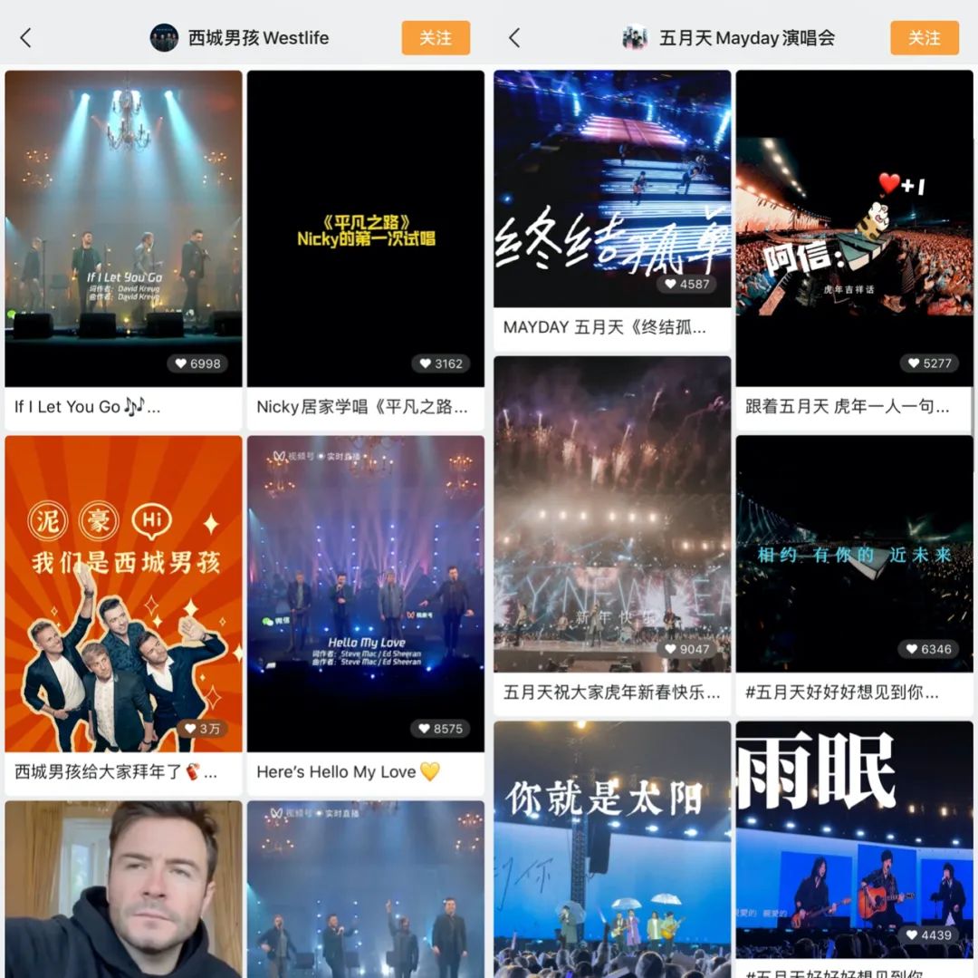 西城男孩和五月天視頻號賬號主頁