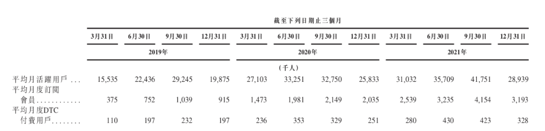 更糟糕的是,營(yíng)銷(xiāo)投入雖帶來(lái)用戶(hù)增長(zhǎng),但留存率并不高。根據(jù)招股書(shū)中的數(shù)據(jù),2021年第四季度,Keep平均月活用戶(hù)已經(jīng)回落至約2894萬(wàn),平均月訂閱用戶(hù)也從上季度的415萬(wàn)下降至319萬(wàn)。