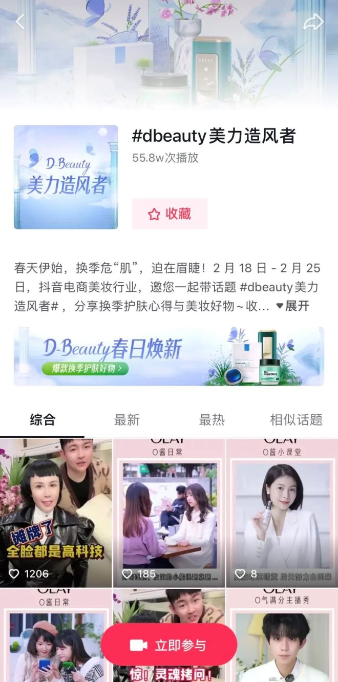 商家/達人只要帶話題#dbeauty美力造風(fēng)者,發(fā)布美妝相關(guān)短視頻即可參與話題挑戰(zhàn)賽玩法。同樣,該玩法將依據(jù)視頻播放量、點贊量、有效帶貨GMV等維度進行綜合排名,排名前10位商家/達人可獲得相應(yīng)獎勵。