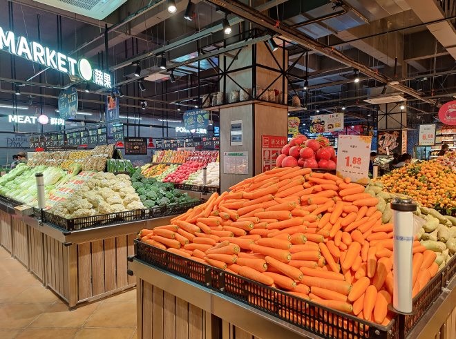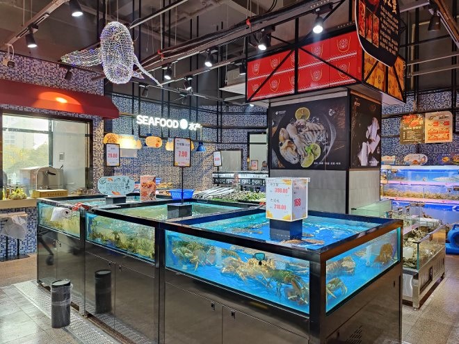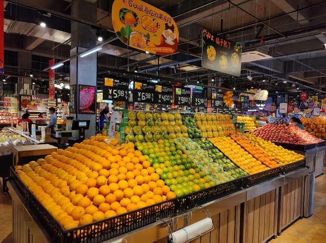 1、按品類管理打造蔬菜、水果、肉品等目標(biāo)性品類,并營(yíng)造九大生活主題區(qū):遇見(jiàn)花開(kāi)、休閑酒吧、美食中心、海鮮工坊、蔬果中心、零食中心、飲品館、護(hù)理美妝、廚房中心,商品品種豐富、豐滿、齊全,商品陳列雅致、新穎。