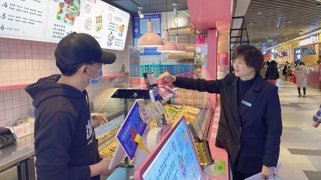 當時,她與同事全天候上班,一天測溫兩次,防范未然,商戶與樓層的消毒每日巡查數(shù)次;設立專門的外賣拿餐臺,方便商戶與外賣平臺的銜接;在同事們的協(xié)助下,建立員工群,協(xié)調(diào)商戶統(tǒng)一訂餐……