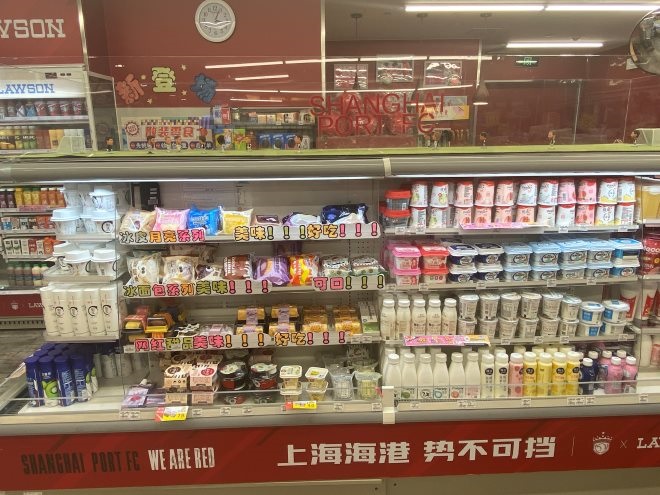 店鋪商品齊全, SKU數(shù)超1700,主食類有盒飯、調(diào)理面、進(jìn)口食品等,還有年輕白領(lǐng)喜愛的三明治、色拉、水果等健康食品,還新增了體育彩票、鮮花等服務(wù)。店內(nèi)配置了羅森與松下聯(lián)合研發(fā)的無煙油炸鍋,讓顧客能在便利店買到勁脆的炸物食品,此外還配有芙樂奧奶昔機(jī),讓顧客享受DIY的樂趣。店內(nèi)的散裝零食為顧客提供了多種小包裝休閑零食。球迷朋友們還可以在店內(nèi)買到海港的各類周邊。