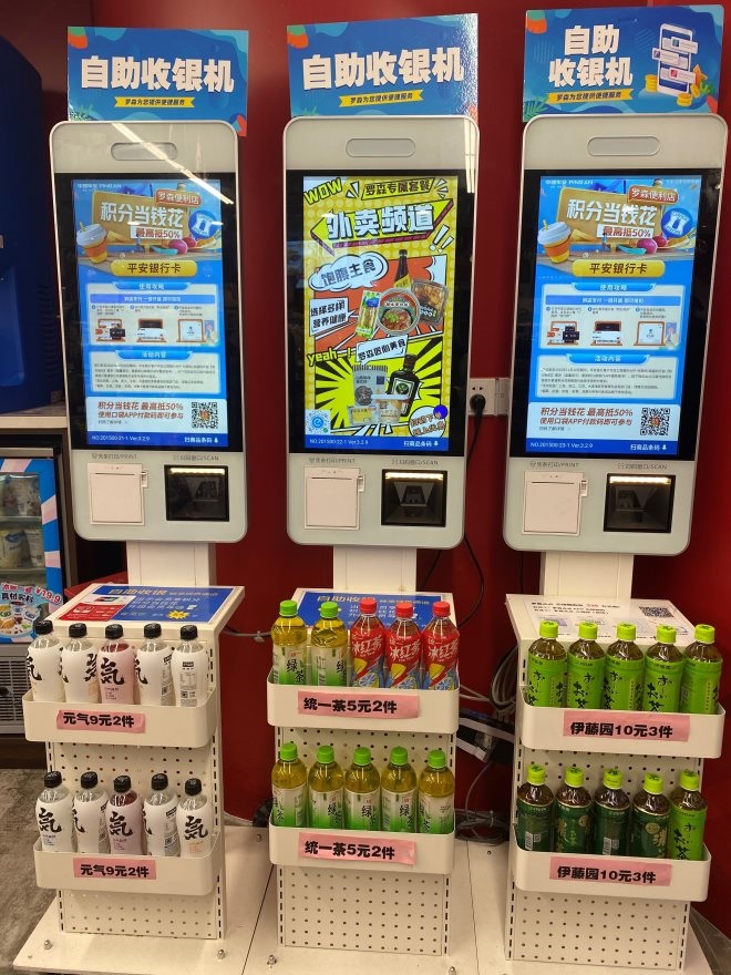 顧客可通過到店自助掃描羅森商品二維碼,在手機(jī)端完成選購(gòu)商品、支付結(jié)賬等一系列流程。還可通過羅森點(diǎn)點(diǎn)APP或微信小程序進(jìn)入“到店取”功能,線上提前點(diǎn)單,線下選擇門店自提。另外,顧客還可在店內(nèi)設(shè)置的自助收銀機(jī)上自助結(jié)賬,方便快捷。