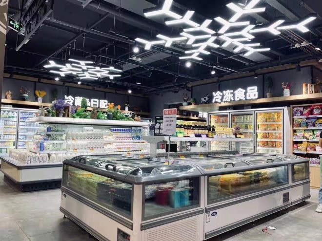 門店商品經(jīng)營(yíng)品種調(diào)整分三大類,非食、食品、生鮮,其布局也符合顧客的視覺(jué)審美,賣場(chǎng)貨架由原來(lái)2.5米調(diào)整1.7米,賣場(chǎng)天花板大圓形燈、生鮮處大型雪花燈,視覺(jué)上給顧客帶來(lái)寬敞明亮,室內(nèi)環(huán)境的調(diào)整,生鮮區(qū)域增加海鮮池(波斯頓龍蝦、面包蟹、小龍魚‘羅氏蝦等海鮮)。