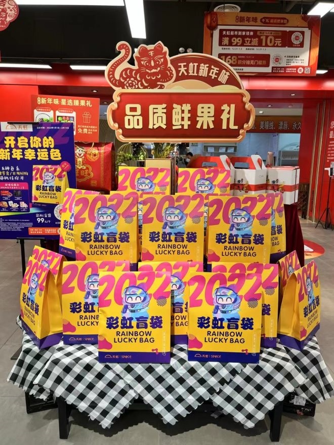畫像二、針對周邊高校學(xué)生群體主推國潮、網(wǎng)紅爆款商品,借助全媒體運(yùn)營手段,在抖音、小紅書、天虹直播平臺(tái)等全渠道立體式營銷渠道全面觸達(dá)年輕群體。2022年春節(jié)前推出的新年特色商品彩虹盲袋獲得了年輕消費(fèi)群體的推崇,上市10天即銷售300多個(gè)盲袋。