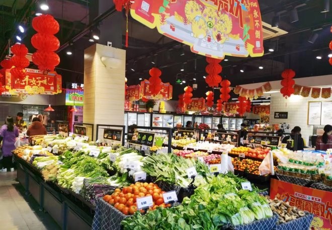 1、以生鮮商品品質為核心競爭力,搭配功能線齊全的基本食品、居家用品和當下熱銷網紅的休閑食品。