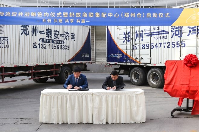 3月1日,螞蟻商聯(lián)與豪翔物流四共戰(zhàn)略簽約儀式暨螞蟻商聯(lián)集配中心(鄭州倉)啟動儀式完成。