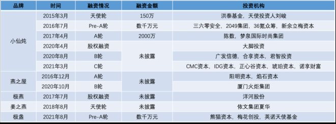 燕窩品牌融資情況,36氪不完全整理制表