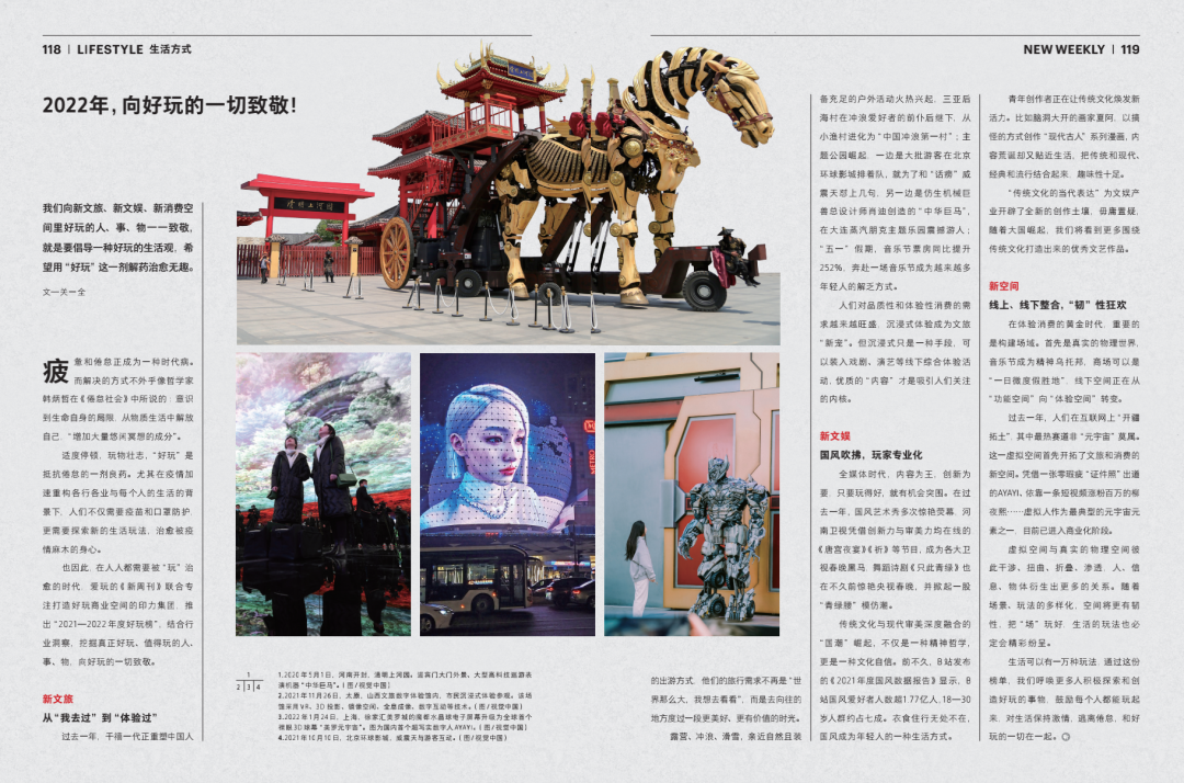 在前兩天剛剛發(fā)行的最新一期《新周刊》上,印力與新周刊合作的「2021-2022年度好玩榜」,大概是最「去商業(yè)地產(chǎn)化」的一次紙媒跨界合作案例了????
