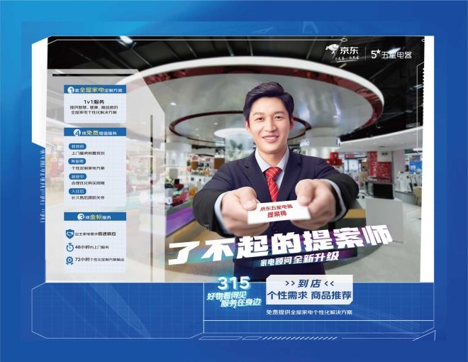 京東電器城市旗艦店、京東五星電器線下門店在打造洗碗機(jī)等家用電器、中央集成電器等新品類的沉浸式場(chǎng)景體驗(yàn)的同時(shí),今年3月更將家電顧問服務(wù)全面升級(jí)成為1對(duì)1提案師服務(wù),以“1+4+3”服務(wù)模式,化繁為簡,向消費(fèi)者提案更符合需求的家居家電解決方案。