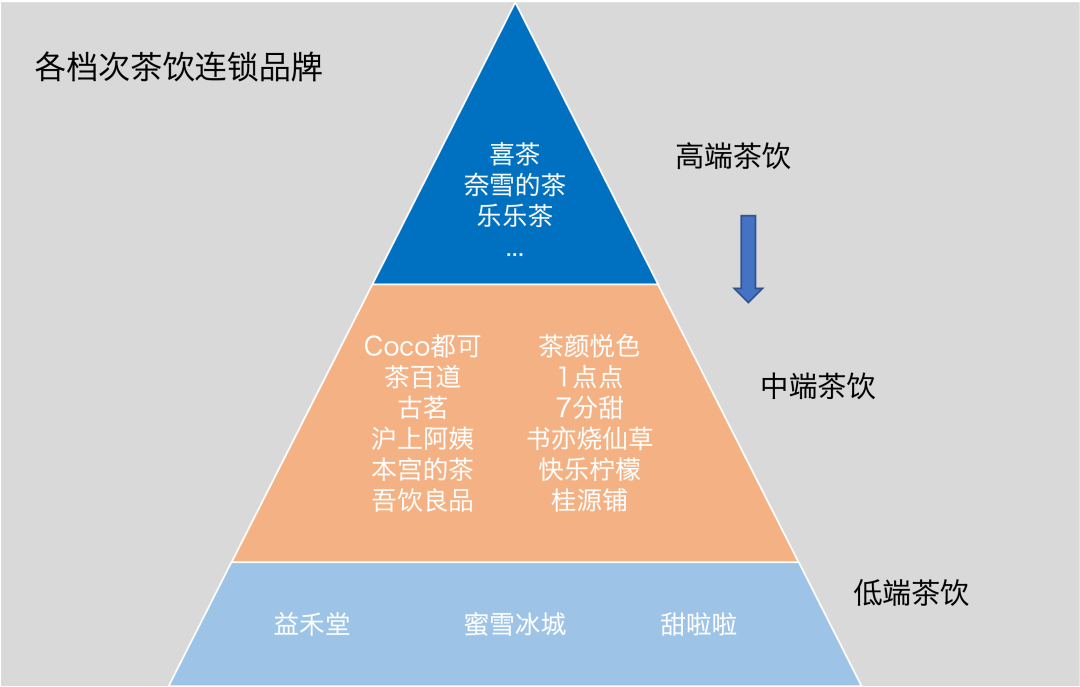 而從市場競爭層面看,喜茶、奈雪降價后,可以全面覆蓋高中低消費圈,目前看第一二梯隊玩家針對的消費定位已經高度重疊。