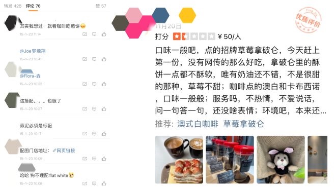 網(wǎng)友評論狗不理咖啡 數(shù)據(jù)來源:微博評論、大眾點評