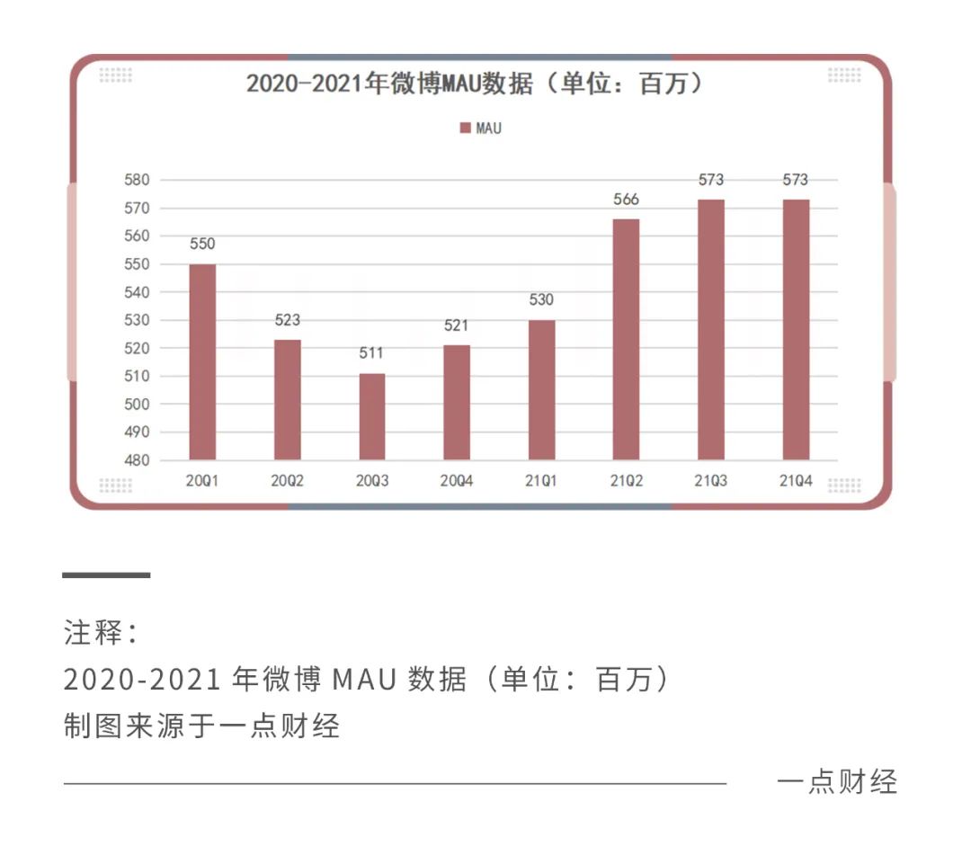 從3月3日公布的2021年第四季度報以及2021財年業(yè)績來看,截至2021年四季度末,微博月活躍用戶達到5.73億,同比增長10%;2021年全年營收22.6億美元,同比增長34%;凈利潤4.28億美元,2020年同期為3.13億美元。
