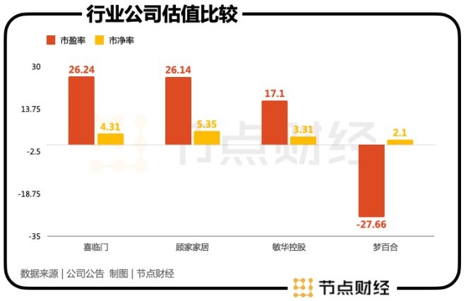 截至3月2日,喜臨門動(dòng)態(tài)市盈率為26.24,市凈率為4.31,高于行業(yè)平均值,也遠(yuǎn)在顧家家居和敏華控股之上。