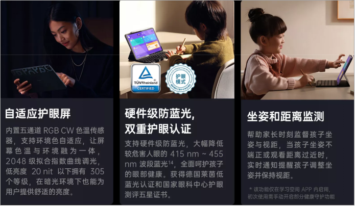 除了強(qiáng)勁的生產(chǎn)力配置,OPPO Pad還專門為學(xué)生打造了學(xué)習(xí)空間,兼具坐姿提醒、護(hù)眼模式等AI檢測(cè)功能,對(duì)孩子的健康學(xué)習(xí)進(jìn)行全面呵護(hù)。