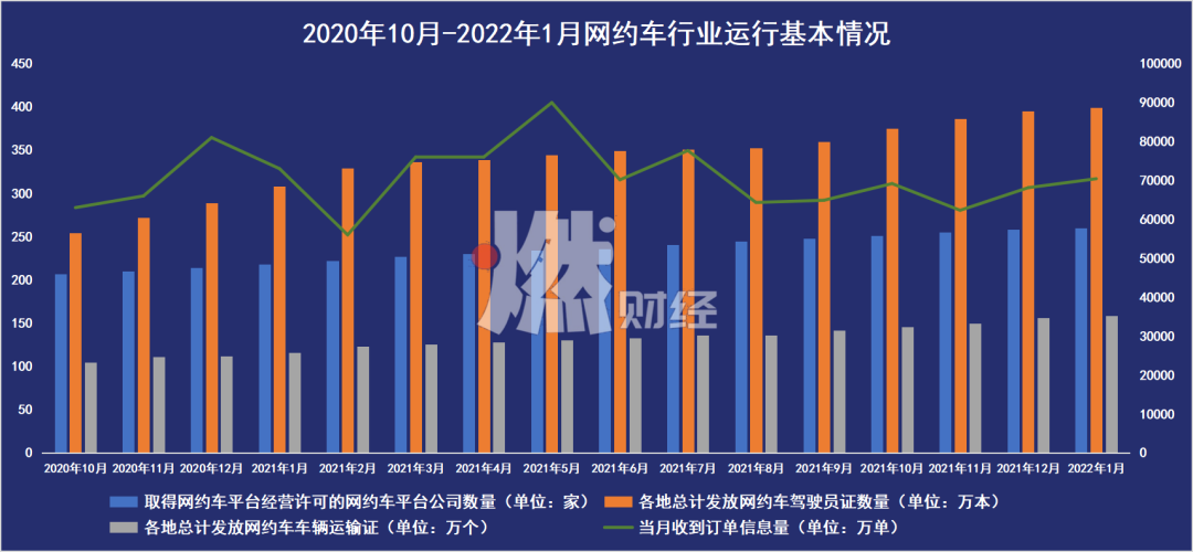 “一直有司機涌進這個市場!睂O師傅表示。燃財經(jīng)在交通運輸部發(fā)布數(shù)據(jù)看到,截至2022年1月31日,全國共有260家網(wǎng)約車平臺公司取得經(jīng)營許可,各地共發(fā)放網(wǎng)約車駕駛員證398.8萬本、車輛運輸證158.3萬本。
