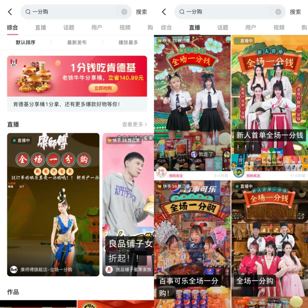 如果直播是快手電商的要塞,那么一分購這種直播類型,就是快手直播的重要堡壘。