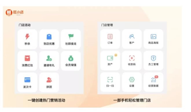 除此之外,旺小店還有 8 大營銷功能,可以一鍵創(chuàng)建秒殺、拼團、社群接龍等營銷活動。