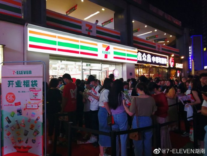 7-11長沙門店開業(yè)當天,直到晚上還在排隊。