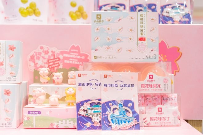高端休閑零食品牌良品鋪?zhàn)油瞥龅臋鸦ㄏ盗行缕泛拖蘖恐苓呉蛏鲜袝r(shí)間略早于其他品牌,成功在小紅書等社交平臺(tái)“出圈”,并通過捆綁“櫻花之城”武漢的熱門IP,迅速提升了一波品牌美譽(yù)度。