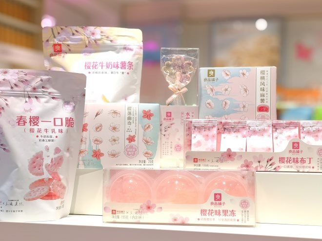 針對(duì)年輕消費(fèi)者的喜好,良品鋪?zhàn)舆特別推出了櫻花風(fēng)味果凍、櫻花造型棒棒糖等櫻花季新品。櫻花風(fēng)味果凍特別添加厚肉銀耳,口感更Q爽。將銀耳做成櫻花造型,口感和美感結(jié)合,讓既要顏值、又要“佛系養(yǎng)生”的年輕人在春季也可以放心吃零食。