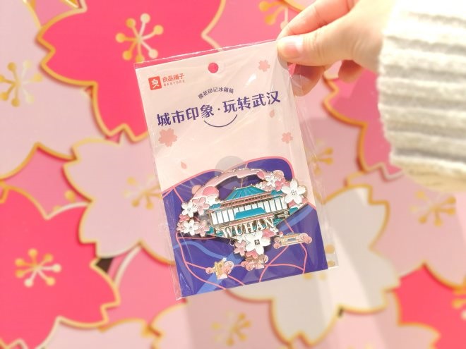 在良品鋪?zhàn)娱T店,一進(jìn)門就能看到粉色迎門堆,”櫻花季“元素出現(xiàn)在門店。從春季賞櫻打卡地之一的武漢大學(xué)、黃鶴樓、再到長江大橋、古德寺等知名地標(biāo),良品鋪?zhàn)舆x取了6個(gè)來漢必打卡標(biāo)志性景點(diǎn),以櫻花元素結(jié)合手繪圖案變身限定款冰箱貼,櫻花粉的配色、金屬質(zhì)感的琺瑯彩工藝,引來眾多網(wǎng)友“曬單”。