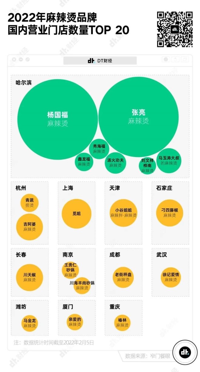 實(shí)際上,不少麻辣燙品牌都來(lái)自哈爾濱賓縣這個(gè)神奇的地方。因?yàn)闂顕?guó)福率先打響麻辣燙生意第一槍?zhuān)h人紛紛加入了這支隊(duì)伍。 在國(guó)內(nèi)營(yíng)業(yè)門(mén)店數(shù)量TOP20的麻辣燙品牌中,有7個(gè)都來(lái)自哈爾濱。