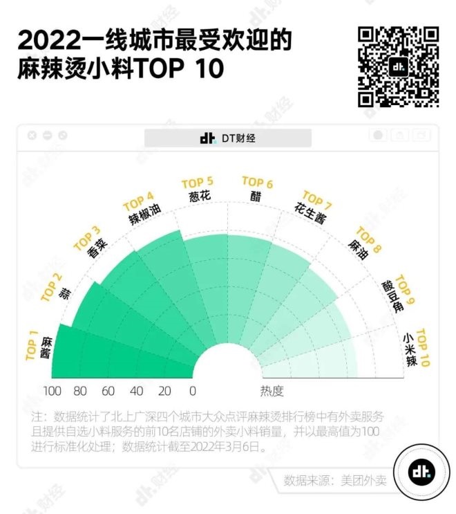 我們統(tǒng)計(jì)了北上廣深四個(gè)城市口碑麻辣燙店的外賣(mài)調(diào)料銷(xiāo)量,發(fā)現(xiàn)在選小料這件事上, 無(wú)論南北方,都熱衷于東北麻辣燙的最佳伴侶——麻 醬。