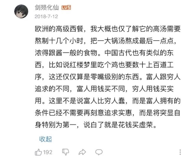 這次的討伐我覺(jué)得更像是兩個(gè)消費(fèi)世界的碰撞, 沒(méi)必要通過(guò)拉踩樹(shù)立一個(gè)人間清醒的大旗。他吃著拉面,說(shuō)你這不是不是傻呀,你看我這吃的也挺飽還挺好。如果你反駁他,就會(huì)引起更大的爆發(fā)。