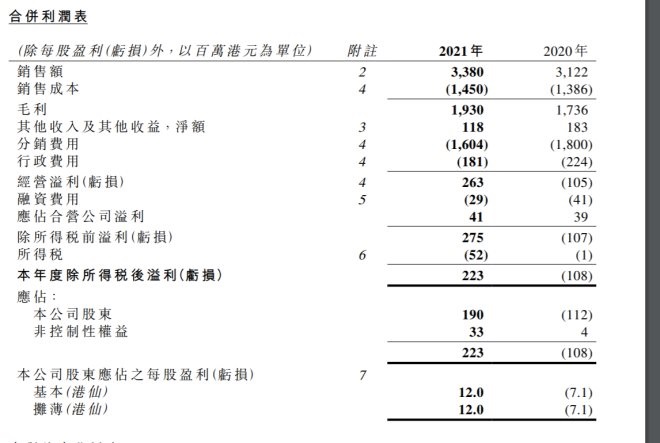根據(jù)公告,2021年佐丹奴銷售額上升8.3%至33.8億港元;凈利潤為1.9億港元,2020年凈虧損為1.12億港元,實現(xiàn)扭虧為盈。