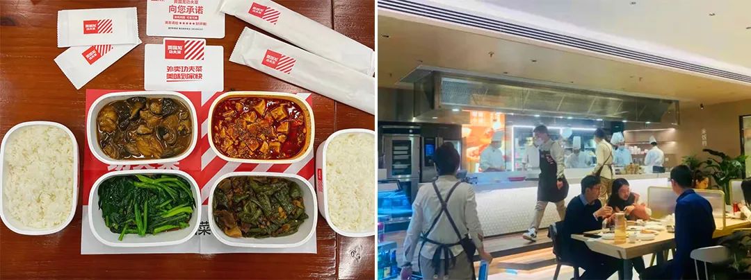 右:賈國龍功夫菜(首鋼店)的外賣檔口??