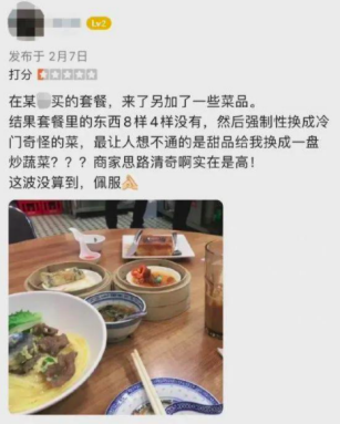 商家側(cè),既需要支付基礎(chǔ)的探店?duì)I銷費(fèi)用,還需要上架利潤(rùn)微薄甚至虧本的團(tuán)購(gòu)套餐,更需要承擔(dān)合作博主“品效部合一”的數(shù)據(jù)作假風(fēng)險(xiǎn)。多重壓力之下,他們只能玩起標(biāo)低價(jià)賣高價(jià)、偷工減料,降低食材成本等套路。