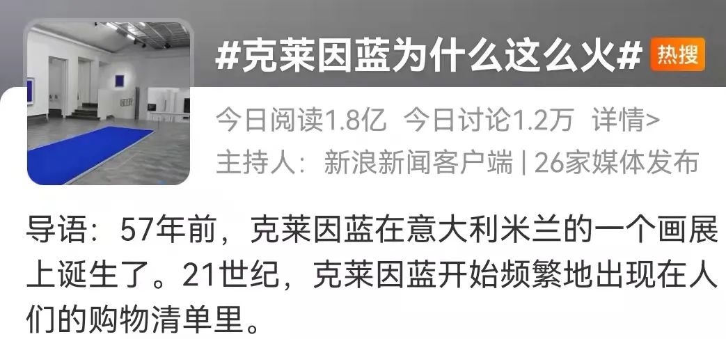 最近,克萊因藍(lán)再上熱搜榜第二。