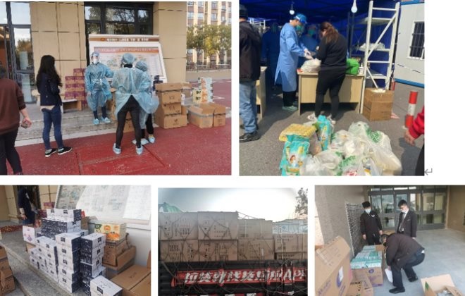 為松江區(qū)450間隔離用房供應(yīng)物資;為上海第九人民醫(yī)院寶山分院臨時集中隔離點提供保障物資300份;為上?苿(chuàng)防疫公司提供保障物資1200份: