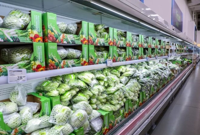 例如,精心挑選后的蔬菜類商品全部是預(yù)包裝方式,會員無需挑選,整包放進(jìn)購物車即可。所有商品都以卡板方式運輸,經(jīng)收貨部驗收后,整個卡板可直接運輸?shù)降陜?nèi)銷售,幾分鐘之內(nèi),幾百包蔬菜就能快速陳列出來。疫情期間,會員希望快速拿到商品、減少店內(nèi)停留時間、減少接觸,山姆前瞻性的商品包裝及帶板陳列方式,就更具優(yōu)勢。