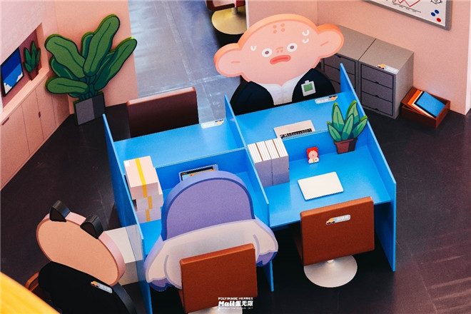 “POLYIMAGE能力有限公司”是杭州來(lái)福士中心繼“MOMO PLANET”、“LABUBU”等潮流IP展之后的又一年輕IP聯(lián)合主題展,以CEO、摸魚(yú)部部長(zhǎng)、劃水部部長(zhǎng)、技術(shù)部部長(zhǎng)、摸魚(yú)部員工、劃水部員工、技術(shù)部實(shí)習(xí)生七個(gè)人物形象為主角,每個(gè)角色分別代表了一周的其中一天,每個(gè)人物都有自己獨(dú)特的人物性格和處事態(tài)度,從而展開(kāi)一系列對(duì)工作和生活壓力四個(gè)篇章的調(diào)侃故事: