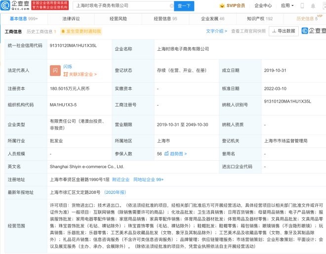 企查查信息顯示,該公司成立于2019年,法定代表人為閃爍,經(jīng)營范圍包含:化妝品批發(fā);衛(wèi)生潔具銷售;日用百貨銷售;母嬰用品銷售等。公開信息顯示,時(shí)垠SHIN專注于美妝、個(gè)護(hù)、潮玩等跨品類產(chǎn)品開發(fā)。