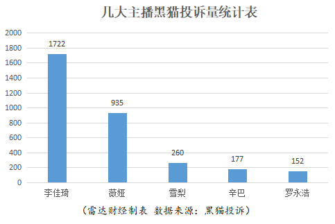 李佳琦直播間位列投訴榜首,薇婭、雪梨、辛巴、羅永浩位列其后