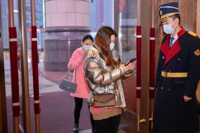 嚴格監(jiān)測所有工作人員體溫,每日上崗前均進行隨申碼檢查,并佩戴口罩及手套。告知餐飲租戶有關(guān)新型冠狀病毒的預防措施,餐飲租戶已按照要求擺放消毒設(shè)備。