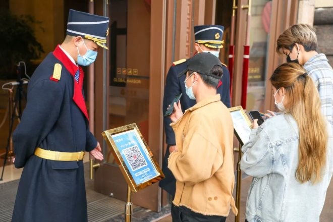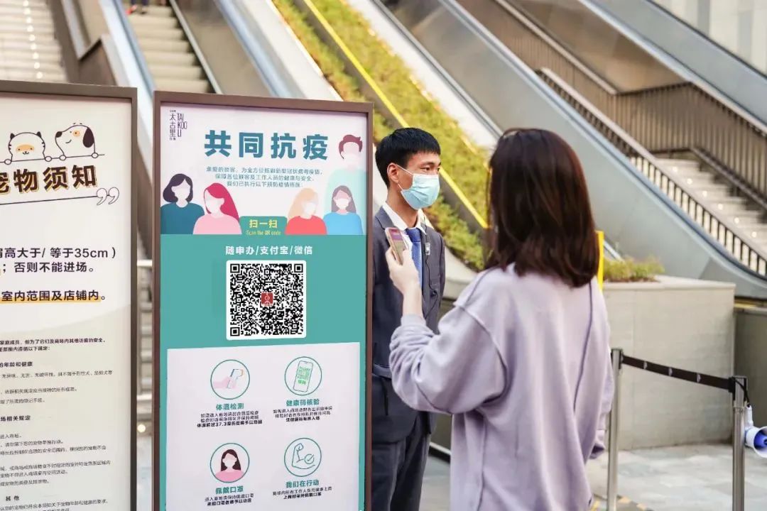 進入商場或辦公樓的人員均需佩戴口罩,并在出入口進行體溫檢測及隨申碼和場所碼的檢查。近日,商場新增了智能健康查驗機,該設(shè)備集核驗多地健康碼、刷身份證核驗健康碼以及核酸疫苗信息查詢等功能于一體。多維度智能終端可采集進出興業(yè)太古匯所有人員的相關(guān)數(shù)據(jù),上報疫情防控相關(guān)部門,形成聯(lián)動預警機制。