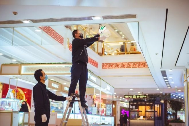 在每日非營業(yè)時間段對商場所有區(qū)域進行消殺工作,在每日營業(yè)時間段升級防護措施及增加消殺頻次,并對重點區(qū)域進行深度消殺。