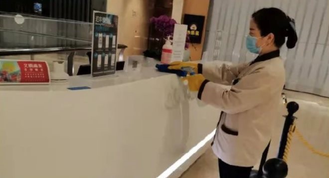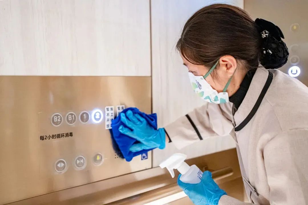 商場、辦公樓電梯應(yīng)急呼叫、按鈕面板加強隔離門更換,每小時由保潔專人進行消毒;商場衛(wèi)生間錯層關(guān)閉、易觸摸面(按鈕、坐便器等)由保潔專人進行消毒;商場辦公樓出入口外圍、吸煙區(qū)、收發(fā)室、垃圾房、車庫由保潔專人進行噴灑消毒;