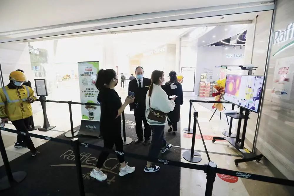前灘太古里于3月12日為所有租戶安排免費核酸檢測,商場內(nèi)所有工作人員均健康上崗,保持佩戴口罩。