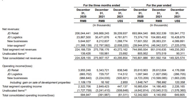 2021年京東零售總收入為 8663 億元,同比增長 25%;其中四季度收入 2498 億元,同比增長 21%。低于全年增速。