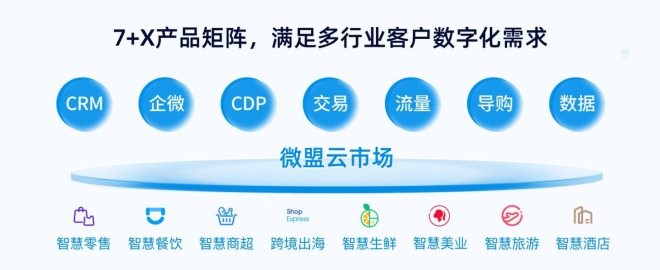 打通數(shù)據(jù)之外,聚焦商業(yè)需求側(cè)痛點(diǎn),圍繞企業(yè)在數(shù)字化過程對SaaS產(chǎn)品“豐富度需要、應(yīng)用一體化需要和適應(yīng)復(fù)雜多變組織經(jīng)營形式”的需要,微盟WOS均提供了針對性的能力。微盟WOS具備豐富的產(chǎn)品矩陣,可極大滿足多行業(yè)企業(yè)數(shù)字化需求。伴隨著WOS的推出,微盟將形成“7+X增長飛輪”,“7”指包括交易、CRM、企微、CDP、流量、導(dǎo)購、數(shù)據(jù)等在內(nèi)的七大微盟核心自研產(chǎn)品矩陣;而在微盟的7大核心產(chǎn)品之外,微盟將“X”交給第三方,協(xié)同生態(tài)伙伴打造更多企業(yè)數(shù)字化轉(zhuǎn)型所需的產(chǎn)品和解決方案。