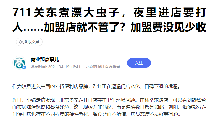 此前,無論是全家便利店還是漢堡王,都曾在加盟店身上翻過車。據(jù)媒體報道,7-11該門店即是加盟店。保障食品安全,似乎成了加盟店永遠無法落實的事情。