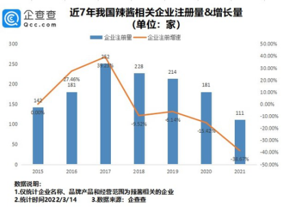 辣醬品牌無限“內(nèi)卷”競爭,辣醬企業(yè)新增增速放緩。