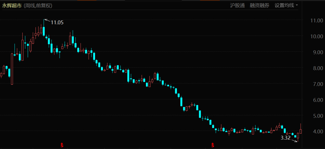 作為對比,2021年一季度永輝的凈利潤僅有0.23億元。顯然在2022年的開年,其業(yè)績有了明顯回暖。受此影響,2021年全年股價一路滑坡的永輝在近期強勢反彈,股價較最低點漲超25%。