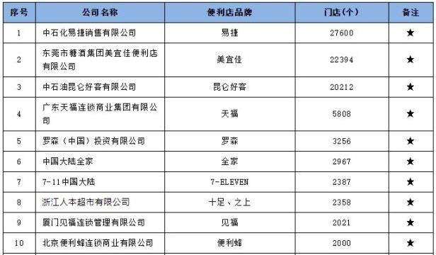 中國(guó)連鎖經(jīng)營(yíng)協(xié)會(huì)公布的2018中國(guó)便利店TOP70排行榜中,7-11中國(guó)大陸以1644家店位列第9,羅森以1399家店位列第12。而在2021年中國(guó)便利店TOP100排行榜中, 7-11中國(guó)大陸以2387家店位居第7,羅森則以3256家店位列第5。